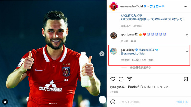 - ◆Jリーグ◆アーセナルとフランス代表OBのDFクリシーがインスタ浦和公式に突然コメント!