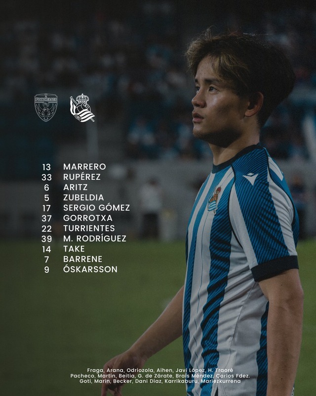 - ◆PSM◆レアル・ソシエダ×横浜FC スタメン発表!久保建英先発